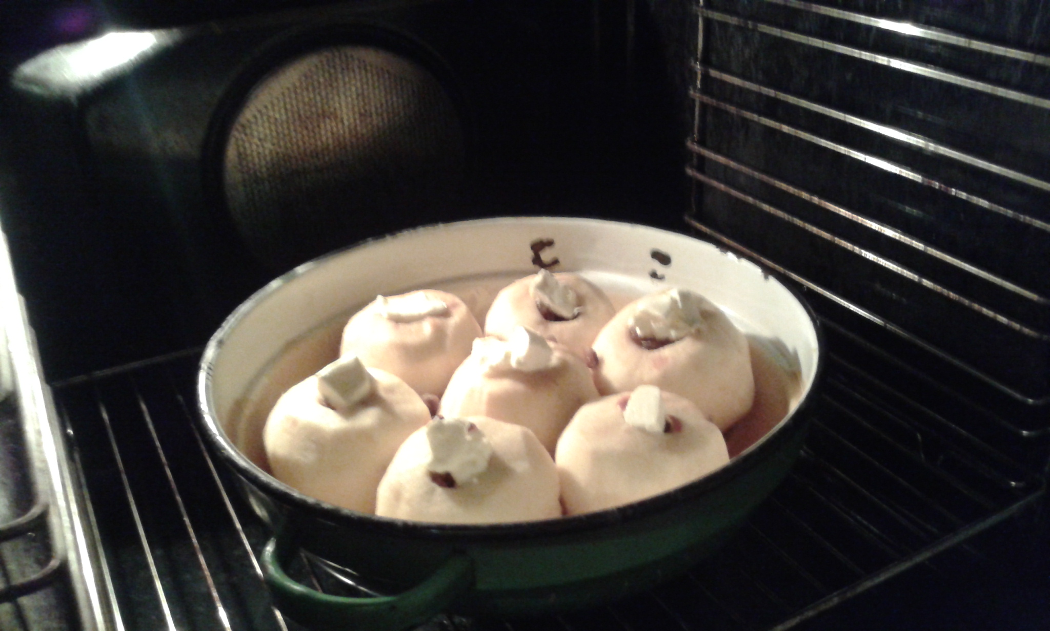 Între timp se face pandișpanul:  gălbenușurile se freacă cu zahărul și praful de sare, apoi apa, uleiul, praful de copt stins, făina și albușurile bătute spumă. Se toarnă peste merele scoase din cuptor și … din nou la … căldurica .